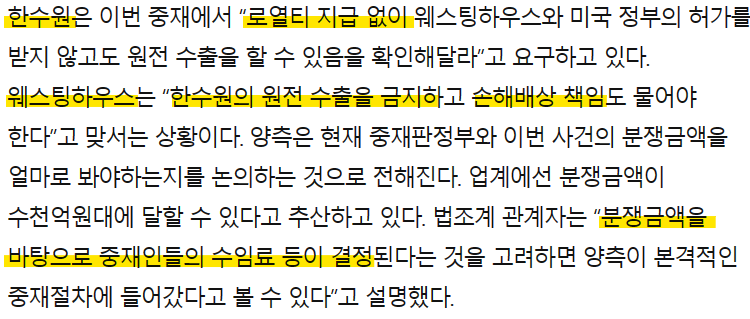 한수원-웨스팅하우스 중재 재개…분쟁 금액 수천억 예상 | 한국경제 (hankyung.com)